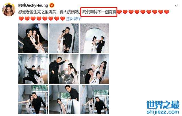 最近因为向佐的一句“我们期待下一个宝宝”,引发了众多网友对郭碧婷怀二胎的猜想,但是当事人并没有对此事做出回应。