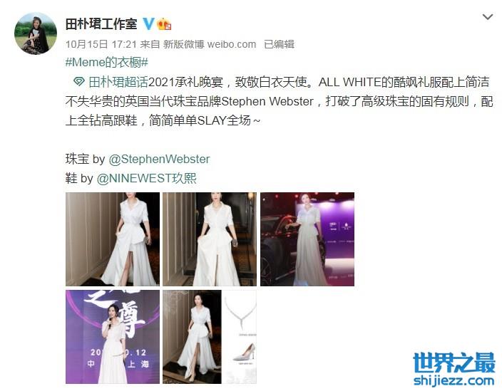 出席的田朴珺是穿着某品牌的高定,整个人的气质非常好,而且出场就成为了全场的焦点人物。一身白裙配合着某品牌的高定珠宝,可以用珠光宝气来形容,相当奢华。