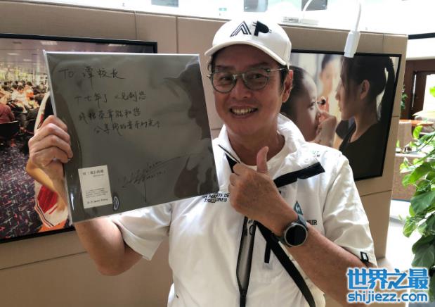 谭咏麟还晒出了张杰送给他的水杯和唱片,对着镜头开心比赞,我们可以看到,张杰在唱片上写下了对谭咏麟的感谢,称已经过去十七年了再见到校长,他感到很荣幸能够和谭校长分享他的音乐时光。
