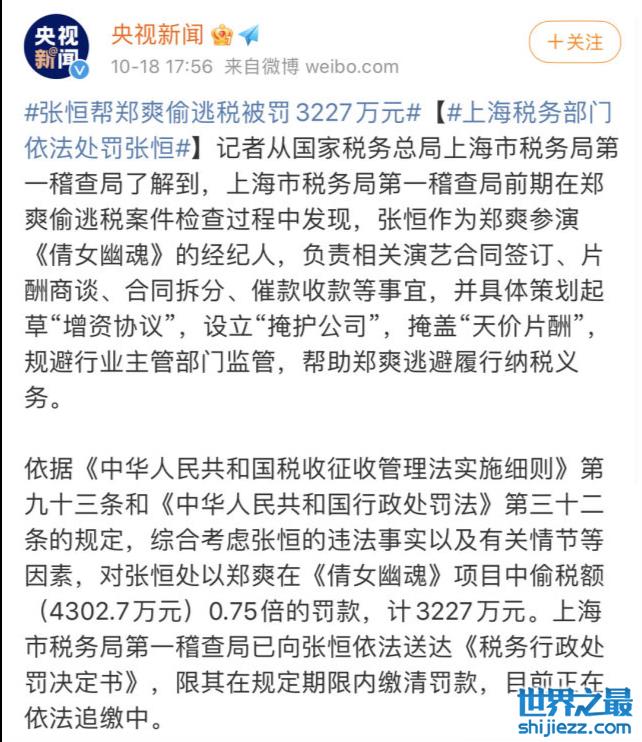 10月18日,相关部门正式通报了税务局对张恒帮助郑爽偷逃税案件的结案信息,在官方资料中,明确认定当时身为郑爽经纪人的张恒,有为其设“掩护公司”,进而掩盖“天价片酬”的行为,还帮其规避部门监管,帮助郑爽逃避部分应当缴纳的税款,最终判决张恒3227万的罚款,对于法院的最终判定,广大网友显然并不意外。