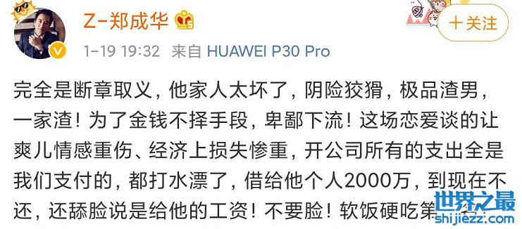 之后,事情似乎告一了段落,就在大家以为已经风平浪静的时候,某爽跟张恒的借贷案有了判决结果,张恒败诉,要赔偿某爽2000万。也就是从这时起,张恒的口碑渐渐逆转了,之前大家都是站在张恒这边的,现在大家开始觉得张恒和某爽,都有问题。
