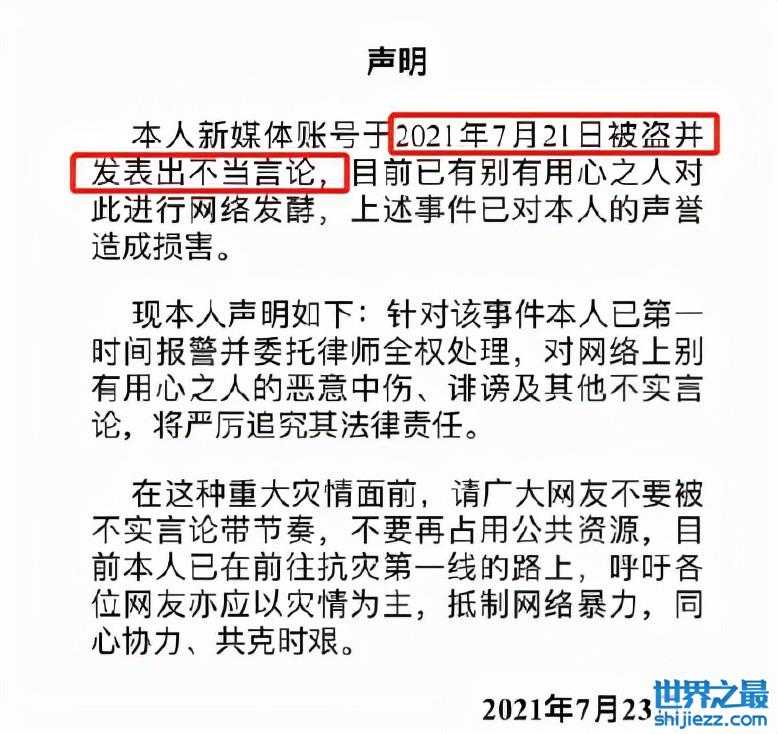 今年七月周炜在社交平台上发布一段驰援救灾的视频,评论区的网友却对他进行逼捐。周炜瞧见后直白地回应,引起极大、更为戾气的争议。言论发酵后,周炜发布一则声明称该平台的账号被他人盗用,许多网友对此并不买账。