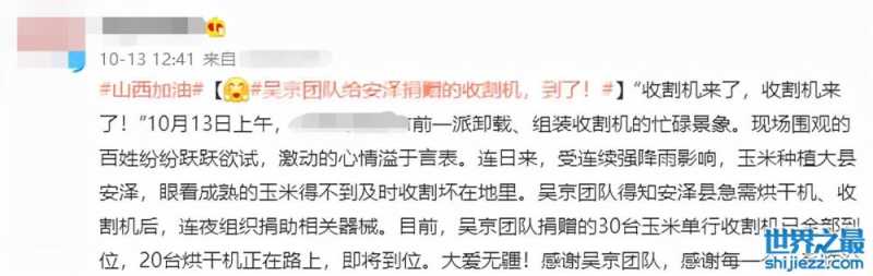 其实有些网友不必去进行不道德的逼捐行为,吴京是个很有爱心、乐于助人的演员,前一个星期吴京团队在网上浏览山西某地的求助信息,立即定向为该村捐赠20台烘干机以及三十台收割机。早前河南突遇天灾,吴京团队直接向该地红十字会打款100万元,获无数人称赞。