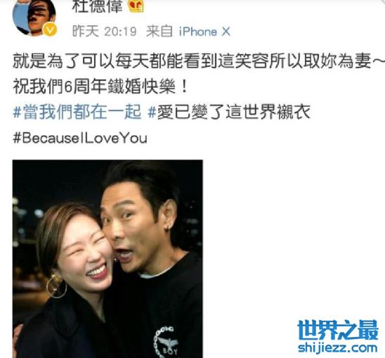 但几年过去了,他们依旧恩爱如初,在杜德伟54岁的时候,两个人还顺利造人成功,拥有了自己的孩子,老来得子的杜德伟对儿子十分宠爱,推掉了大量的工作时间,来把自己更多的时间和爱给了家庭,甚至经常在微博上还向妻子示爱。