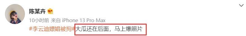李云迪被抓后,网友们也开启了深扒模式,除了扒出李云迪的过往丰富的情史外,网友最为关注的还是李云迪嫖娼对象,目前网络上也流传了多个版本,然而究竟是不是卖Y当事人,目前还不能得知。
