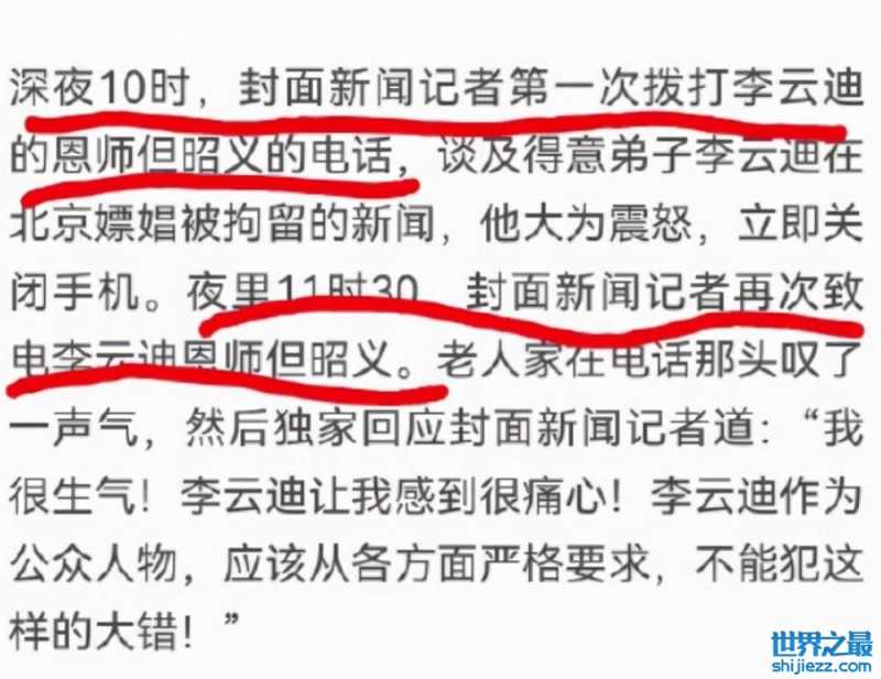 有媒体连夜联系到了李云迪的恩师但昭义,闻知爱徒因为嫖娼被抓走的消息,但昭义很是震惊,也非常愤怒和心痛。但昭义表示,他很生气,李云迪让他感到痛心,作为一个公众人物,李云迪应该从各方面严格要求自己,不能犯这样的大错。