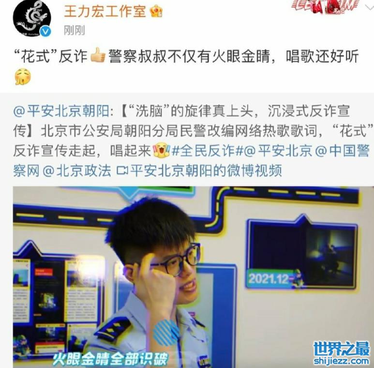 王力宏工作室还转发了一则平安北京的反诈骗宣传微博,并写道:“花式反诈!警察叔叔不仅有火眼金睛,唱歌还好听!”仿佛什么都说了,但又什么都没说!