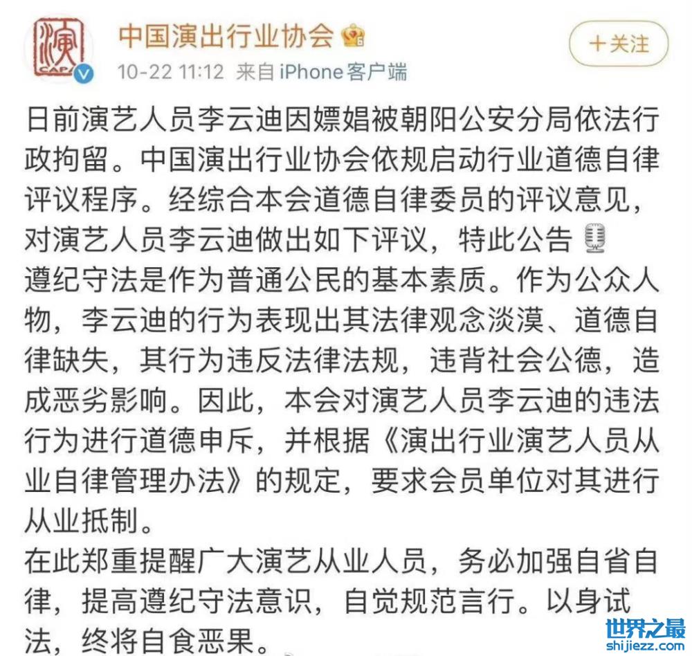 此事爆出之后,不少官媒发博谈及此事,中演协要求对李云迪进行从业抵制,对演艺人员李云迪的违法行为进行道德申斥。