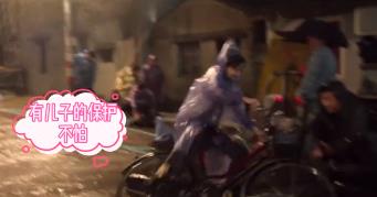 画面中,董洁穿着塑料雨衣,为了拍摄的整体效果更加突出,骑着自行车在大雨中一遍又一遍地狠狠摔跤,雨水淌在脸上,身上也有些许擦红,拍摄过程中整个人看着很是狼狈。