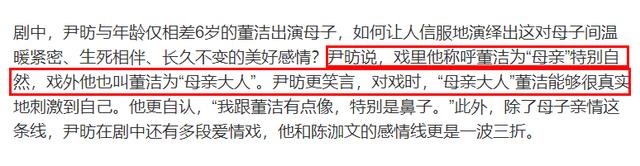 而在此剧开播之时,董洁还特意晒出自己在家里煮饺子的一段视频,以此庆祝新剧开播。此外,董洁还坦言,为了能够更好的磨合,拍出更加真实的母子亲情,自己与尹昉戏里戏外都以母子相称,由此去感知情绪。