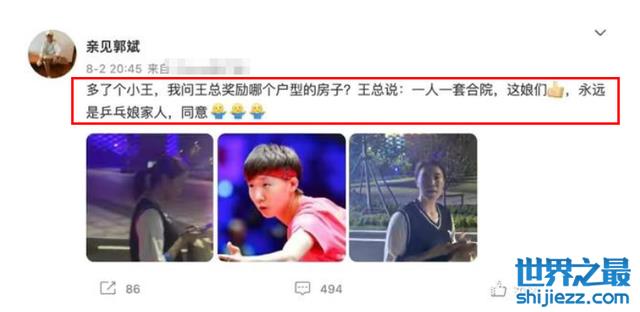 前段时间,王楠作为乒乓球世界冠军,曾在中国乒乓球队征战奥运会的时候公开表示,会给拿奖的乒乓球运动员每人赠送一套山东的合院。此言一出,得到了网友们的大力点赞,连王楠老公郭斌都称其为国乒队的娘家人。