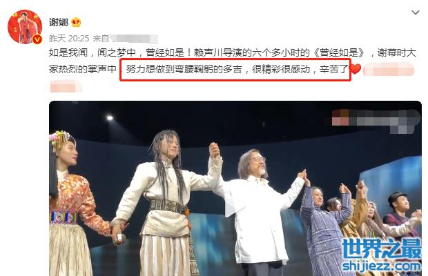 就在前一天,谢娜还在社交平台分享自己作为一名观众,对赖声川导演的话剧《曾经如是》的观后感,称很精彩也很感动,并感谢所有为此付出努力的工作人员。据悉,张杰在《曾经如是》饰演男主“多吉”,前两天张杰在演唱会上意外受伤,被医生诊断“腰椎横突骨裂”,因此弯腰鞠躬十分困难。