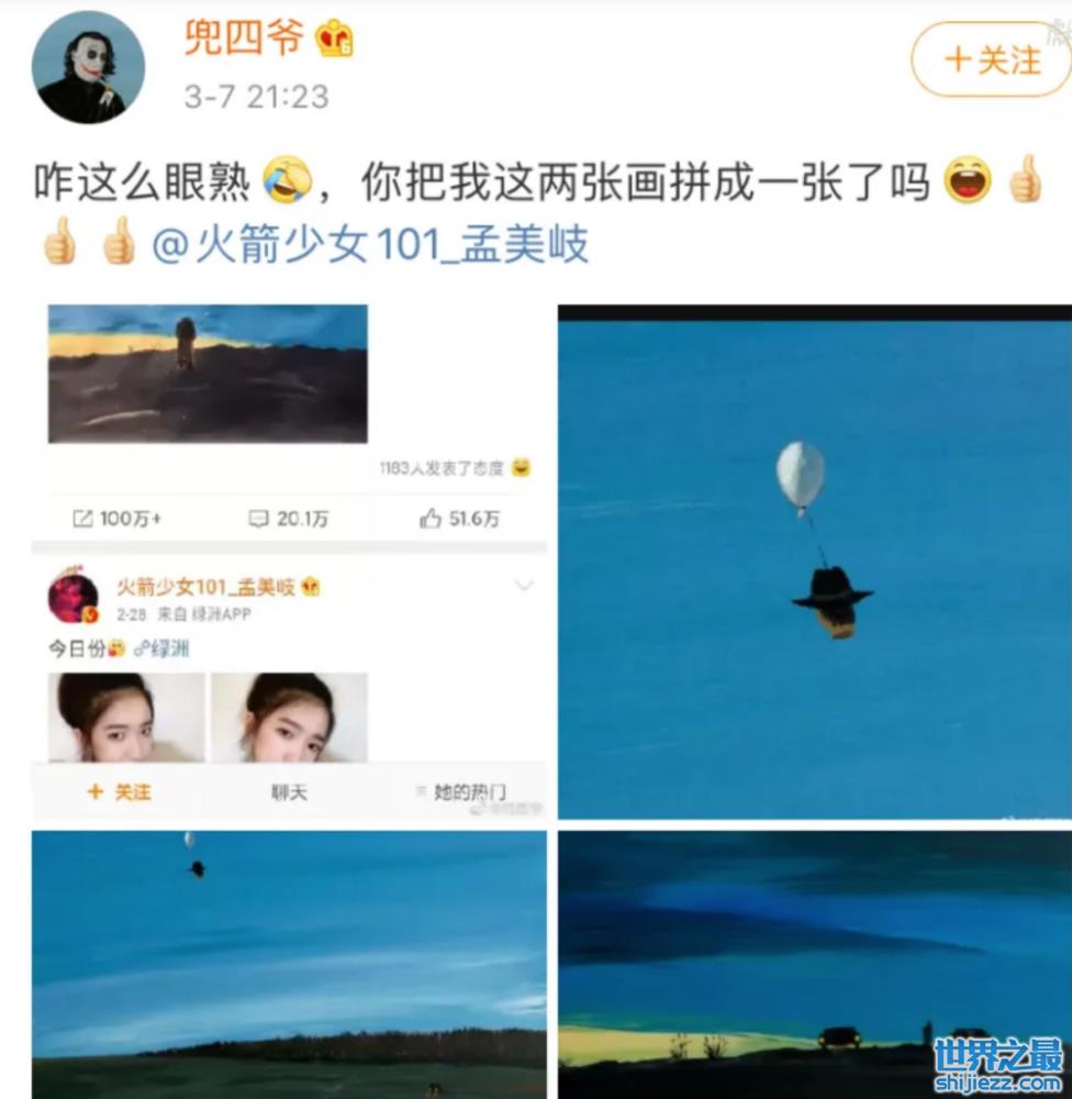 但是第二天,画手兜四爷就发文称,孟美岐的画作就根据自己的两张图合成的。