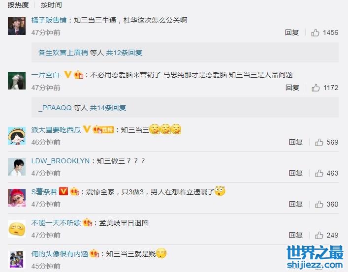 事情被曝光之后,短短几个小时的时间,如今孟美岐的个人账号脱粉数达到几万名。个人账号下面的评论已经超过30万,而且多数是留言“听说你知三当三?”“宝贝你还好吗?出来解释一下当三的事情”“三儿好当吗?你怎么可以这样子?”