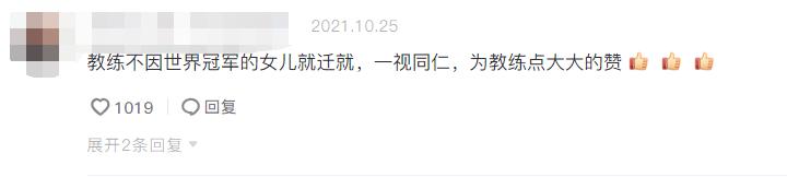 郭斌看了这一段直呼心疼女儿,但也非常支持教练的做法,并相信女儿以后不会再迟到了。网友们看了纷纷表示严师出高徒,教练不因是世界冠军的女儿就迁就的做法值得欣赏。