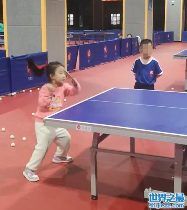 只见视频里,笑笑戴着大红色的蝴蝶结和穿着粉嫩的单衣十分可爱。她打起乒乓球时身形干脆利落、非常敏捷,左右跳跃着接住了对面发来的每一个球,出手时还带着一股狠劲。