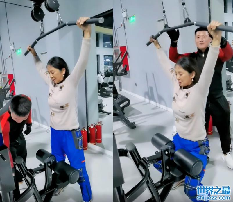 58岁李勤勤健身房练胳膊!大力拉起60斤铁片,一旁教练全程保护 ...