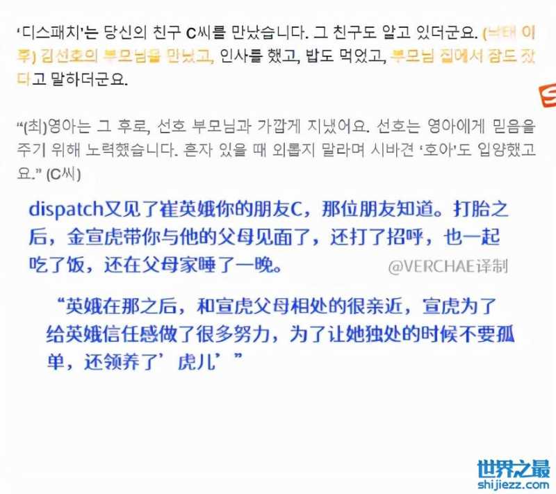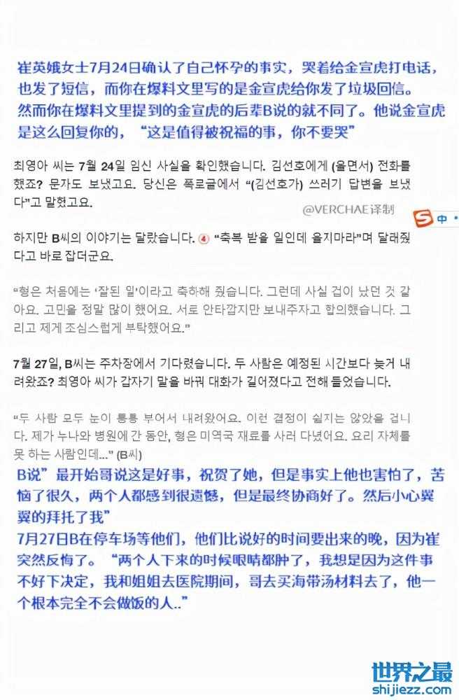 但是近日D社的一则报道,却让整件事似乎有了反转。D社作为韩国知名的娱乐八卦媒体,爆的料一直都很真,所以大家也比较相信D社的报道。这次在报道中,不仅曝光了金宣虎与前女友崔英娥的时间线,还提供了两人身边人的许多证词,甚至是崔英娥前夫的爆料。