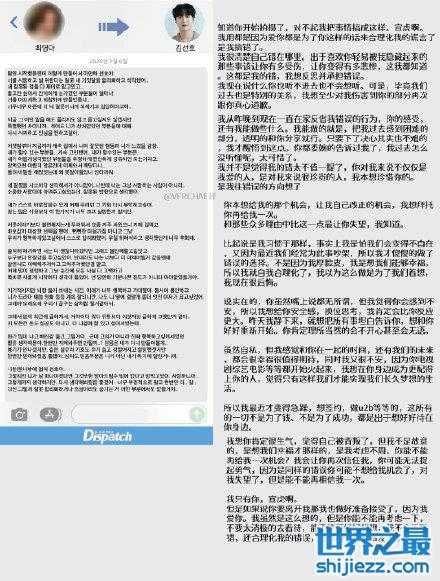 D社还曝光了金宣虎与崔英娥第一次分手之后,崔英娥发给金宣虎的道歉信,道歉信中崔英娥承认了自己撒谎,并苦苦挽留。