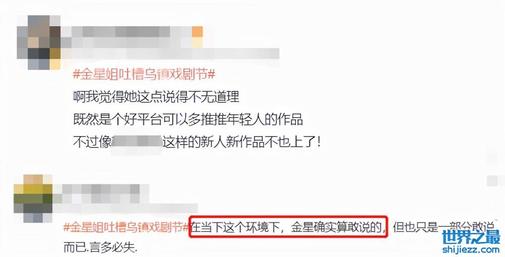 随后,金星吐槽乌镇戏剧节的视频迅速在网络上传播开来,引起了网友的议论。不少网友表示金星真的好敢讲,还表示金星讲的话确实有很多的道理。