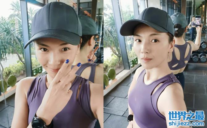 41岁殷桃晒素颜健身照!撩起上衣秀腹肌,脸上暴汗泛红晕