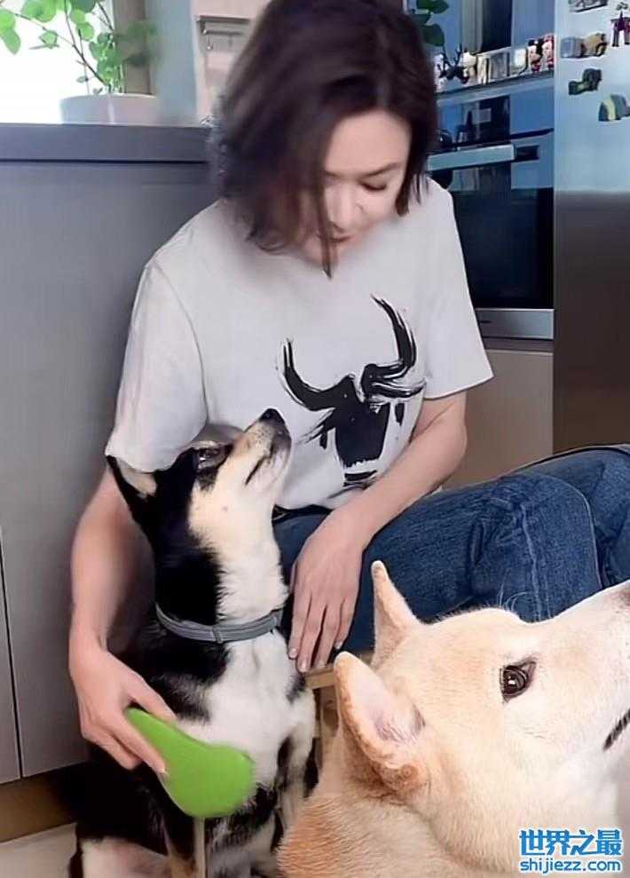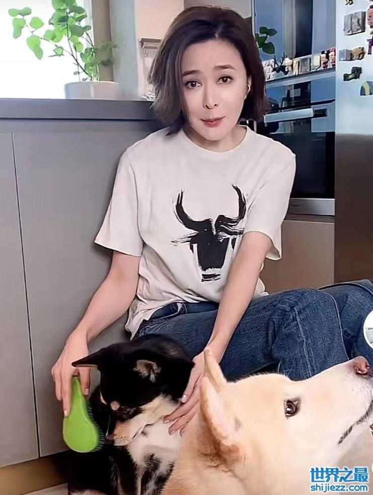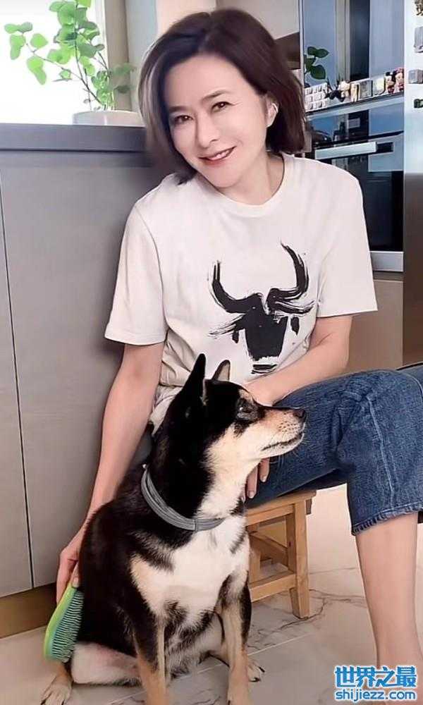 59岁关之琳给狗梳毛,淡妆出镜脸上没有皱纹,打扮休闲腿又细又长 ...
