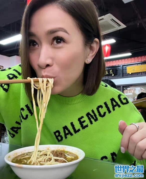 46岁佘诗曼现身街边小吃店,筷子夹面条嘟嘴自拍,皮肤白净不显老 ...