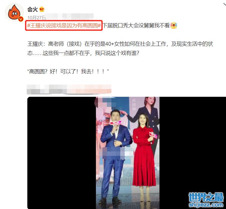 在与站在高圆圆身旁的王耀庆互动时,二人的表现十分不俗,在台上谈笑风生,非常的幽默,王耀庆还直言“是因高圆圆女神才接下这部剧”,大赞高圆圆非常优秀,引起了台下一阵骚动。