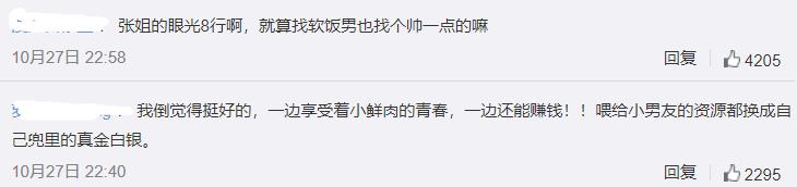 不过也有人认为,张雨绮一边享受着小鲜肉的青春,一边还能赚钱,喂给小男友的资源最后都换成了自己口袋里的真金白银,有什么损失呢?何乐而不为呢?