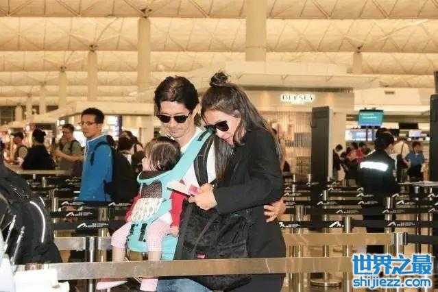 夫妻俩机场出行,Jeremy抱着孩子,还得牵着妻子的手。