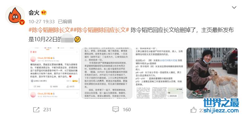 在陈令韬的长文中,他对医护以及事件相关的工作人员表示了谢意,疑似回应之前吞安眠药事件,并表示自己已经认识到了错误,接下来会振作起来重新出发,希望大家可以给他一个机会。