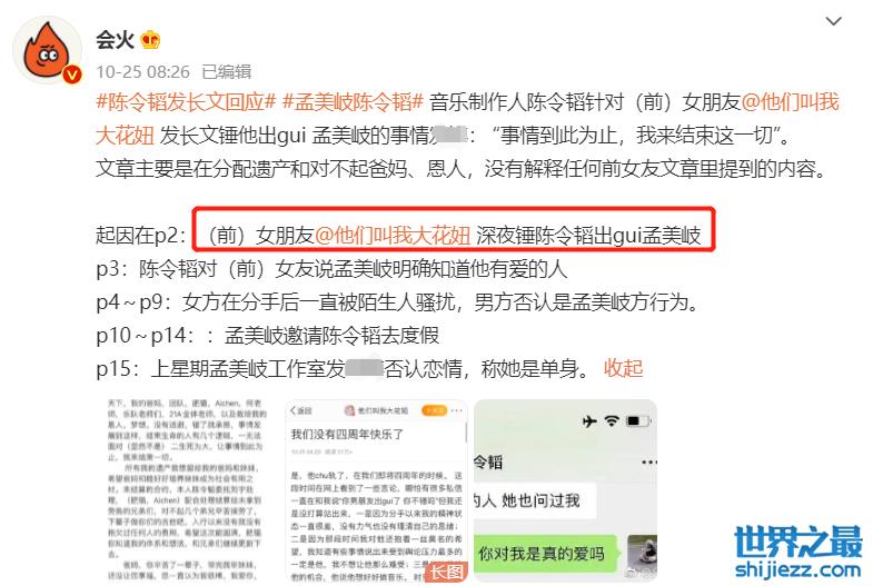 而在事件发展之初,是陈令韬的前女友在网上曝光了孟美岐与陈令韬的聊天记录,发声指控孟美岐介入他人感情,陈令韬劈腿孟美岐。