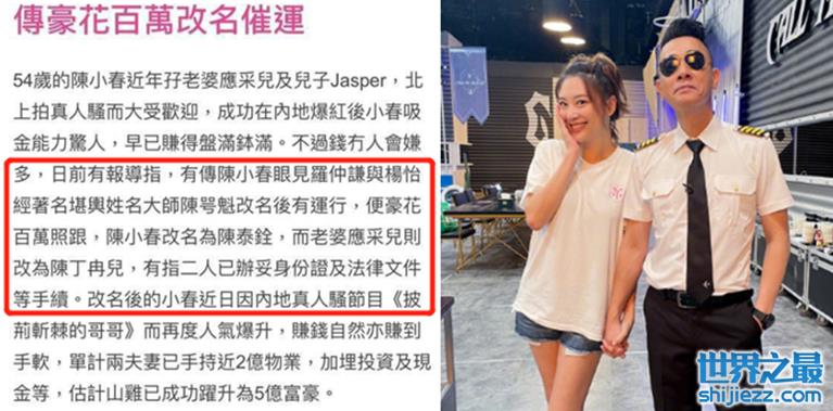 曝陈小春夫妇花百万改名!男方疑似改名陈泰铨,女方改名陈丁冉儿 ...