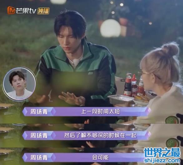 周扬青提出,需要三个月以上的时间了解才能进入下一段恋爱,这样才能对双方负责。她是觉得,上一段时间太短,对彼此的了解不够深的时候在一起,会可能很快分开,也会伤害到彼此,所以她才想要下一段恋爱是在足够了解之后才开始的,而不是在一开始就马上确定关系。