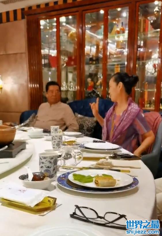 近日,有网友晒出李双江携妻子梦鸽现身饭局的视频。从视频中看,饭局设在了一个布置奢华的酒店,参加的大多应该是夫妇俩的朋友。只见82岁的李双江头发乌黑,身上穿着白色衬衣,大肚腩十分明显。他靠在座椅靠背上,聚精会神地看着旁边的妻子。