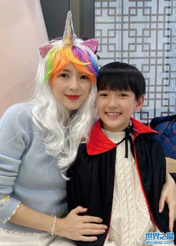 晒出的照片中,章子怡身穿天蓝色针织衫,大走青春减龄风,头上佩戴着独角兽式假发,绚丽多彩的发色下,整个人显得格外俏皮可爱,一旁的袁近辉小朋友内穿白色毛衫,外搭黑色小斗篷,宛若小王子一样的扮相同样耀眼吸睛,可以看出袁近辉与章子怡关系相当熟络,举止也是颇为亲昵,袁近辉的小脸紧紧贴着章子怡的假发,两人同框着实宛若“母子”。