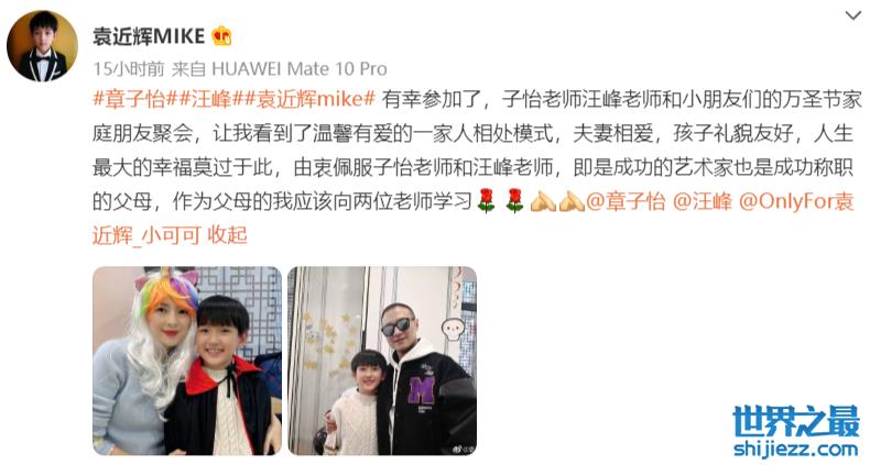 从口吻与语气来看,发表这条动态的是袁近辉的妈妈,在文中她透露自己和家人有幸参加了子怡老师汪峰老师和小朋友们的万圣节家庭朋友聚会,让她看到了温馨有爱的一家人相处模式,夫妻相爱,孩子礼貌友好,人生最大的幸福莫过于此,除此之外,袁妈妈还表示自己由衷佩服子怡老师和汪峰老师,他们即是成功的艺术家也是成功称职的父母,作为父母的她应该向两位老师学习。
