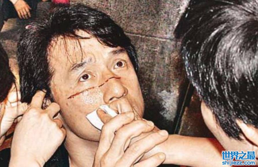 他的拼命贯彻了六十多年的岁月,更体现在演艺事业上。有人总结成龙拍摄时受过的伤包括:拍摄《醉拳》时眉骨受伤、眼角被踢裂,在《蛇形刀手》时被踢落一颗牙齿,拍摄《师弟出马》时鼻骨撞裂和鼻腔充血。最惊心的是电影《红番区》中有一段是他被人狂追到楼顶,成龙在无任何保护措施的情况下,跳过十几米高的楼层,四五米的宽度。