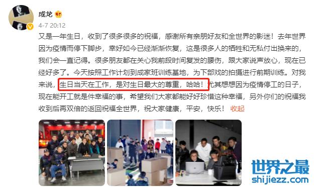 很多人为此感到非常有趣搞笑,同时也感慨成龙已有67岁,但至今仍奋斗在影视一线。今年4月刚好是他的生日月,成龙表示生日当天在工作就是对生日最大的尊重,如此热血的话语感染不少网友。