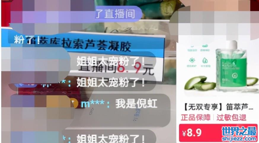 “无双”倪虹洁,前两天在自己的直播间兜售8.9一大瓶芦荟护肤品,9.9的唇膏。