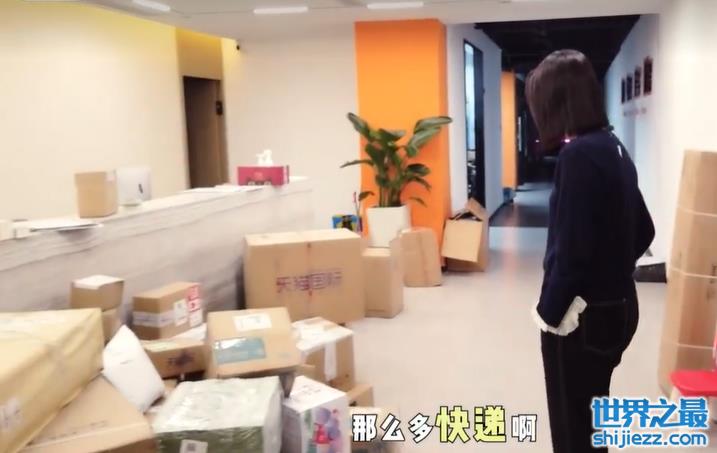 除此之外,朱丹公司的地上也满满当当全是等待拆箱的快递盒,看起来显得十分杂乱,跟大家想象中明星公司区别很大,朱丹当场随便搬来一张塑料板凳,坐在地上就开始拆起了纸箱子。