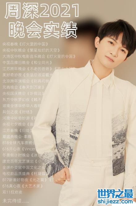 不统计不知道,一统计吓一跳,算上即将到来的双十一晚会,2021年周深已经参加了33台晚会了!这样算下来,几乎平均每个月都能参加3台晚会!最厉害的不是他参加了33台晚会,而是他33台晚会每一场都表现得很棒!