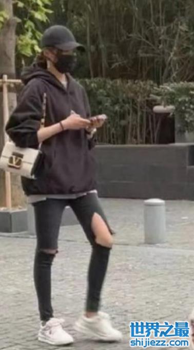 关晓彤背着自己代言的名牌包,穿着破洞牛仔裤,一双标志性的大长腿辨识度极高,即便是带口罩和帽子,大家也都能区分她和其他女生。