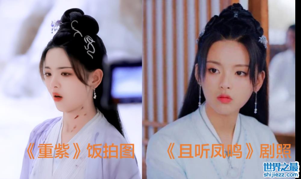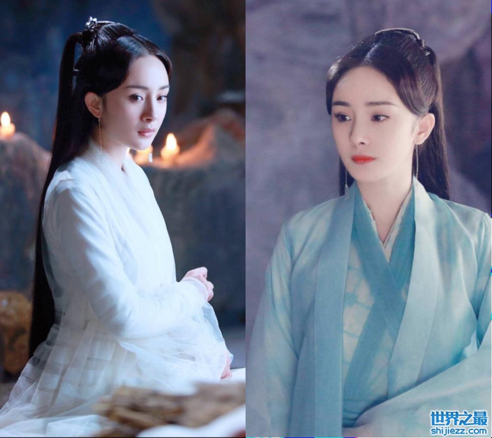 杨幂拍的最近的三部古装剧,发型无一里外都是梳平、中分,唯一的区别,就是装饰略有不同,单看这两张图,你分得清哪个是《扶摇》,哪个是《斛珠夫人》吗?