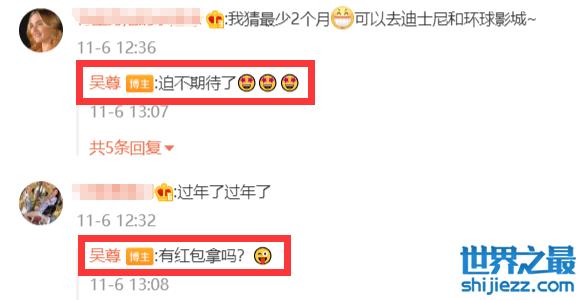 而在评论中有粉丝询问,看带那么多行李是否打算在此过年,吴尊的回应无疑给出了答案,也迫不及待想带全家去迪士尼和环球影城玩了,看来一家人的确有在中国欢度新年的打算,尽情享受一个别具意义的超长假期。