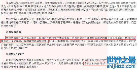 面对整容质疑,杨怡声称是自己的化妆技术进步了,还表示如果要整容,首选是眼睛而不是鼻子。
