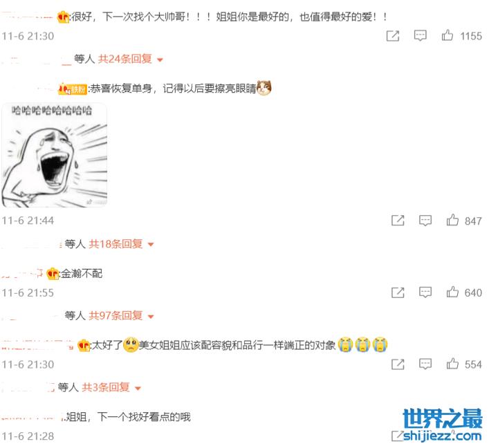 金瀚的评论区当中,粉丝们则都在祝贺金瀚“脱离苦海”,还有粉丝留言说:“认真搞事业,远离狗皮膏药”,也有让他以后擦亮眼的。