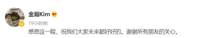 金瀚也发文称:“感恩这一程,祝我们大家未来都好好的。谢谢所有朋友的关心。”