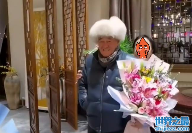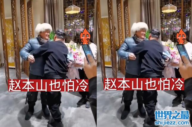 站在赵本山身后的女粉丝慢慢靠近,鼓起勇气大胆揽住他的肩膀,手里还紧抱着花束。与偶像亲密拥抱的粉丝脸上盛满了笑容,从赵本山的表情就知道,他十分喜爱这种朴实的表达。