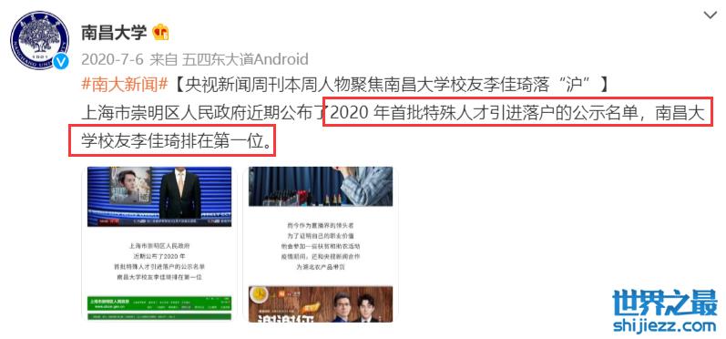 另外,南昌大学的账号中也不止一次提到了李佳琦,在2020年李佳琦还以特殊人才引进落户上海,南昌大学还特意发动态为其祝贺,如此说来,李佳琦已经更改了户口,所以不存在因户口未能及时更新而导致是高中学历,这个解释说不通。